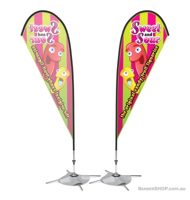 The shape of the Teardrop wind flags are eyecatching and demands attention. Perfect for displaying company logos to brand an event or shop front.