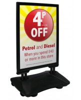 Striking ‘all black’ forecourt sign with front-opening snapframes and a water-fillable base. Supplied with 2 full colour, high quality encapsulated posters.